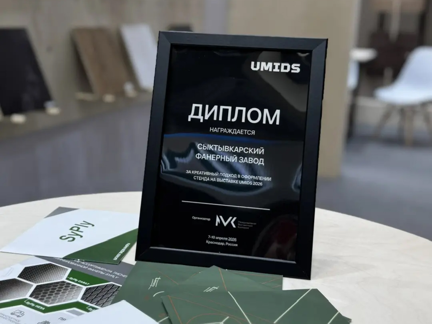 UMIDS-2026 стала важной точкой взаимодействия с рынком: живое общение с производителями, дизайнерами и партнерами позволило обсудить реальные задачи и предложить эффективные решения на базе продукции компании. Интерес к фанере SyPly и новинкам Lamarty подтвердил актуальность представленных материалов. Дополнительным признанием стало награждение стенда завода дипломом за самое креативное оформление — экспозиция привлекала внимание посетителей и стала одной из самых заметных на площадке.