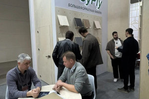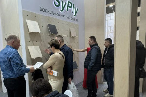 На своем стенде Сыктывкарский фанерный завод представил фанеру SyPly для различных сфер применения. Материал используется в интерьерных решениях, производстве корпусной мебели, а также при изготовлении каркасов мягкой мебели.