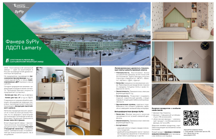 На предприятии производится высококачественная фанера под торговой маркой SyPly, а также ламинированные ДСП премиум-класса Lamarty.